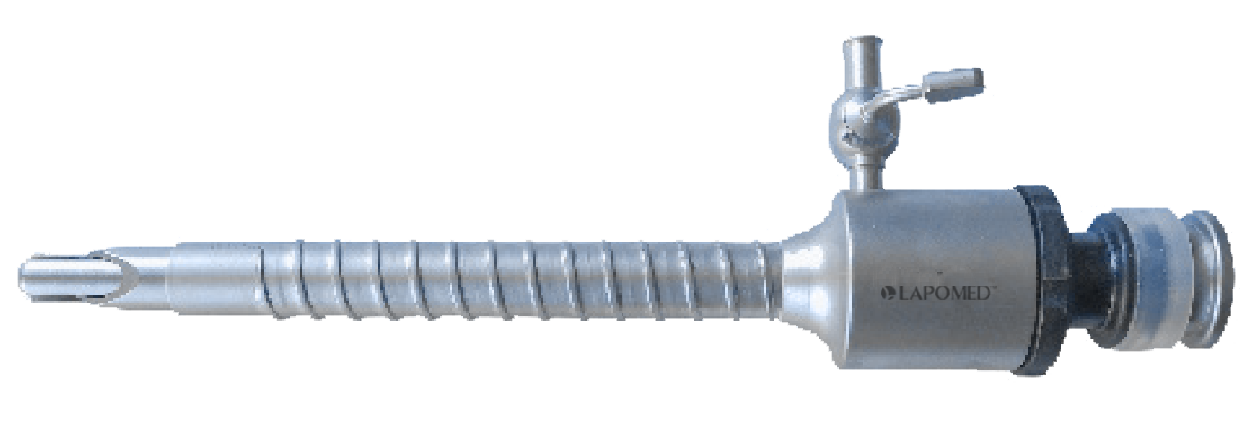 Канюля троакару LAPOMED™ може мати спіральну насічку, що дозволяє фіксувати троакар у черевній порожнині міцніше, але при цьому підвищується травматизм тканин.