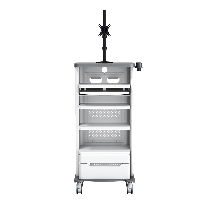 Сучасна ендоскопічна приладова стійка з кріпленням VESA для моніторів до 32", яка легко збирається та добре вписується у дизайн сучасних операційних кімнат.